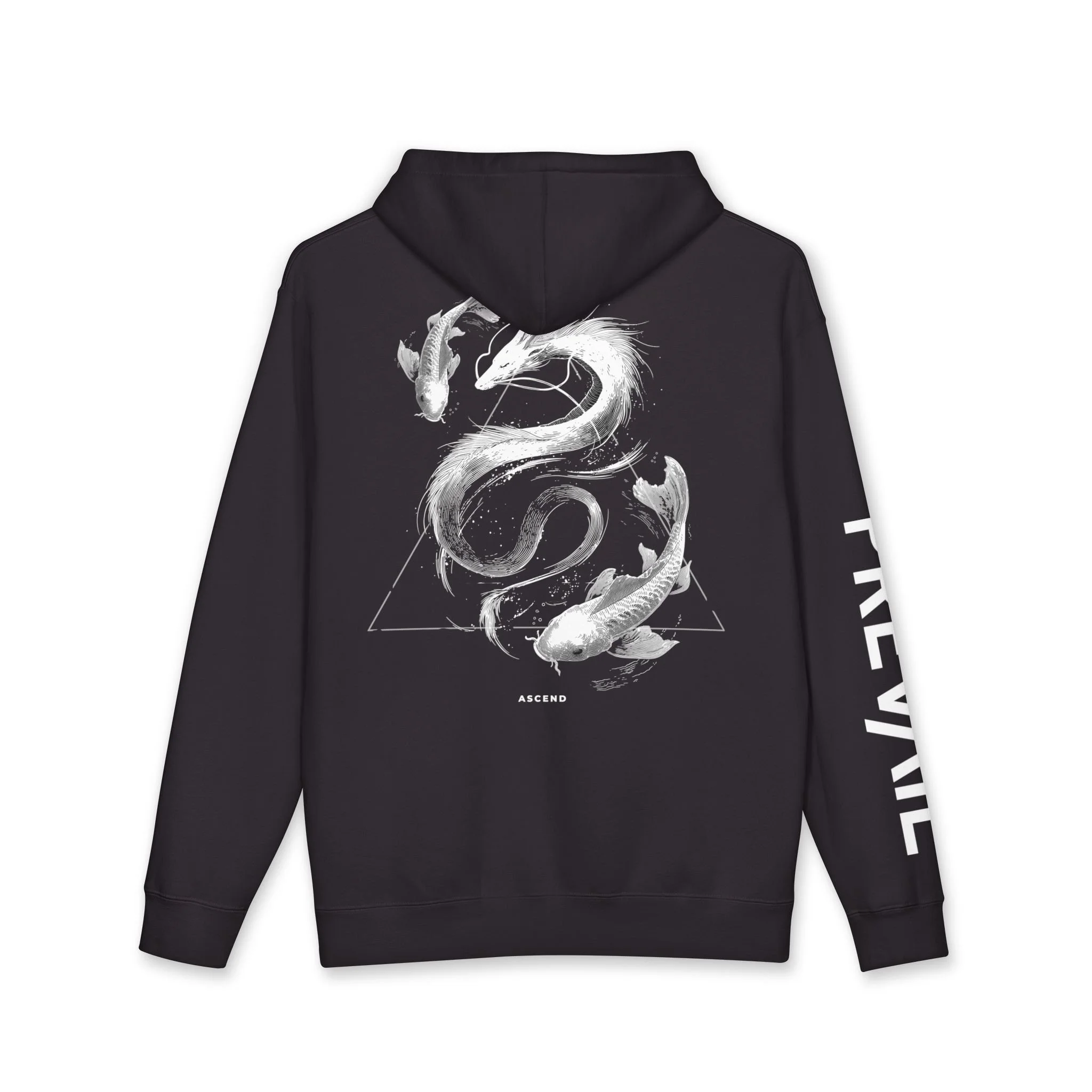 Ascend draws from the legend of the koi, the fish that swims tirelessly against the current until it reaches the Dragon Gate, where it transforms into a dragon. It captures the relentless drive, discipline, and courage required to rise above resistance and surpass limits. Every challenge becomes a step in the climb, every effort a push toward transformation. This hoodie embodies that journey — the steady momentum, the strength forged through struggle, and the unyielding pursuit of the next level. Swim upstream. Break through. Ascend. Prevail.